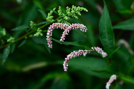 Persicaria maculosa, lady's thumb small flowers closeup selective focus
