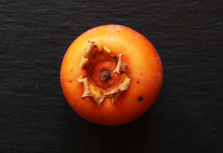 Top view of an isolated persimmon on slate background for food illustrations