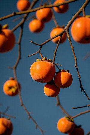Close up of ripe persimmons on the branches