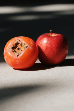 Persimmon and Apple Still Life Close up