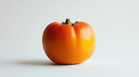 Ripe Persimmon on Yellow, Vibrant Orange Fruit, Glossy Skin, Isolated on Yellow Background