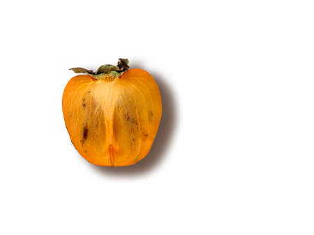 Ripe persimmon on a white background with a shadow from the window