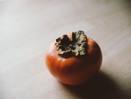 persimmons on wooden surface