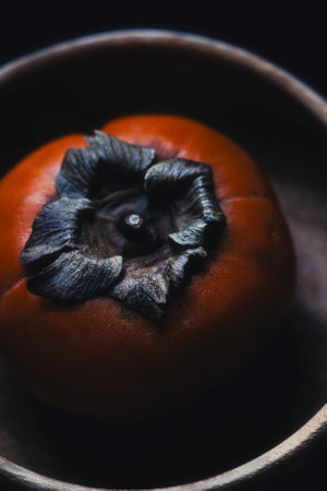 Persimmon on a dark background. Persimmon on a black background.