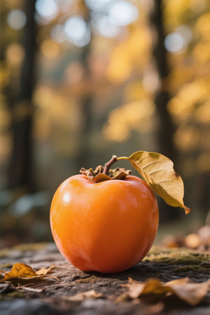 Colorful and appetizing food composition featuring fresh persimmons, a symbol of autumn's bounty.