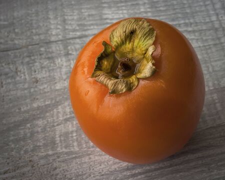 Ripe fresh persimmon on wood board. Food ingredient. Fruits