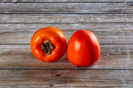 Persimmon fruit over wooden background