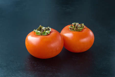 Fresh ripe persimmons on a black background