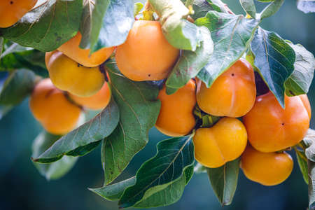 Ripe Persimmons fruit hanging on Persimmon branch tree