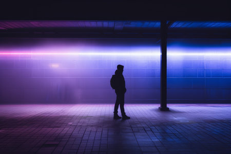 a person standing in front of a purple light