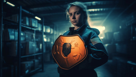 Confident adult athlete in futuristic suit, standing indoors at night generated by artificial intelligence