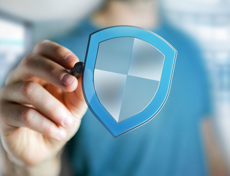 View of a Shield symbol displayed on a futuristic interface - Security and internet concept