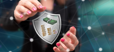Protection network security computer and safe your data concept, Businessman holding shield protect icon