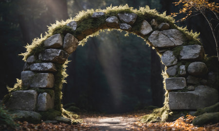 sandstone arch illuminated by soft sunlight, created with generative ai