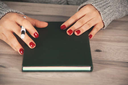 Female hands holding notepad or note book, diary