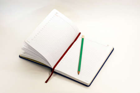 open notebook with pencil on white background