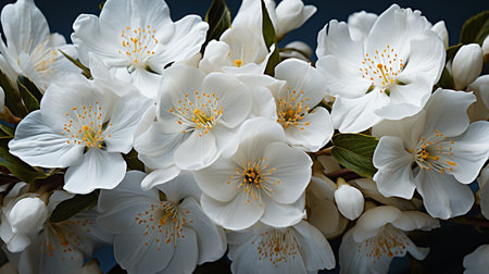 This image showcases a close-up of vibrant white flowers in full bloom, set against a soft, blurred background. The composition emphasizes the flowers' intricate details and textures. The overall aesthetic is one of natural beauty and freshness, perfect for various commercial applications like advertising and editorial content.