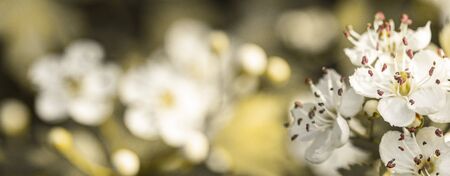 Cherry tree blossoming flowers with soft petals on natural floral background