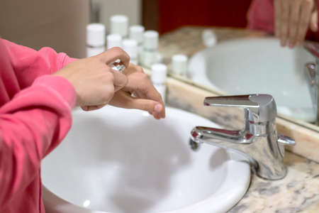 Hand disinfection. Hygienic cleaning liquid , covid 19