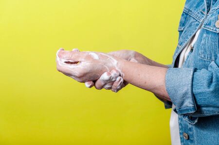 Wash hands by rubbing with soap for prevention of corona virus, hygiene to stop spreading coronavirus.