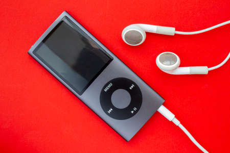 Mp3 red with headphones on a white background