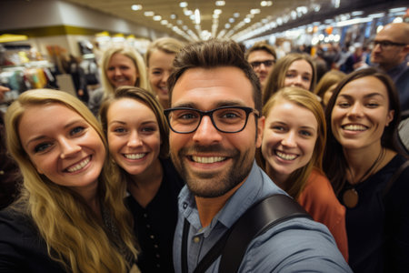 A woman uses her camera to capture a group of people at an event, The influence of influencer marketing in driving brand engagement, AI Generated