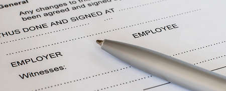 Contract between employer and employee with pen