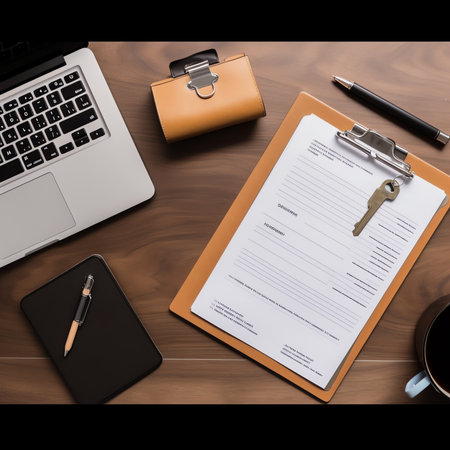 A modern clipboard holds a motivational goal list with checkboxes and a pen, set in a tranquil workspace featuring wooden elements and minimal distractions.