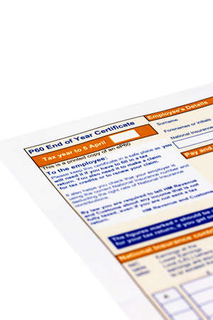 English Tax form P45 End of year certificate by HM revenue and customs