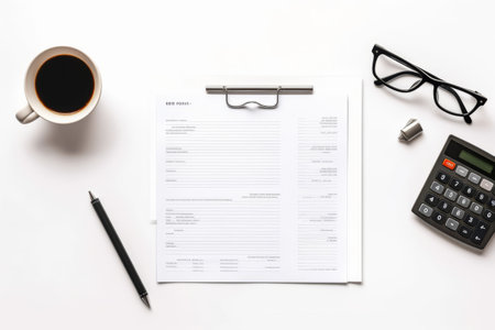 A serene morning scene featuring a coffee cup beside paperwork and a pen on a wooden table, perfect for inspiring productivity and focus.