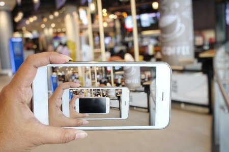 Taking a photo of blurred cafe with smart phone