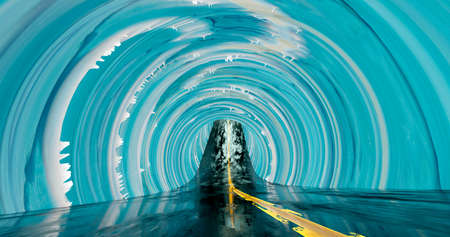 3d rendering. A tunnel with a road into the distance and the texture of ice on the walls.