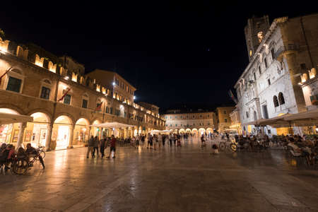 Ascoli Piceno (Marches, Italy): the famous Piazza del Popolo, the medieval main square of the city at evening with people