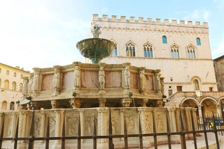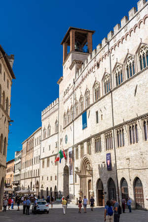 PERUGIA,ITALY - SEPTEMBER 3,2020 - View at the Palace Priori and Maggiore fountain in Perugia. Perugia is the capital city of both the region of Umbria in central Italy.