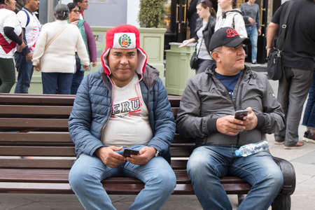 Lima, Peru - OCTOBER 10th 2017: Fanaticism in Peru (Peru vs. Colombia) Russia 2018. A couple taking a picture