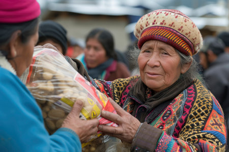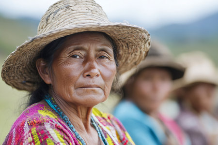 Elderly indigenous woman wearing a traditional straw hat and colorful clothing, showing wisdom