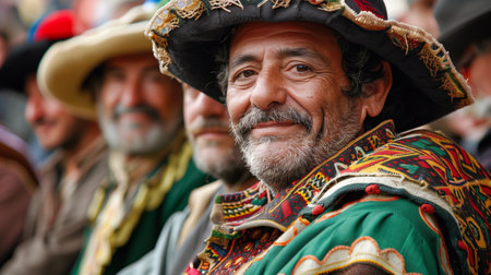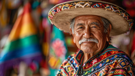 Elderly Man in Traditional Mexican Attire with a Richly Decorated Sombrero, Exuding Cultural Pride and Wisdom.