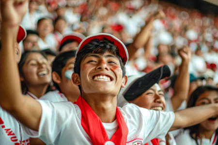 Traditional Peruvian pilgrimage colorful crowd. Vibrant multicolored clothes at religious Peru festival. Generate ai