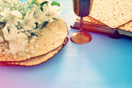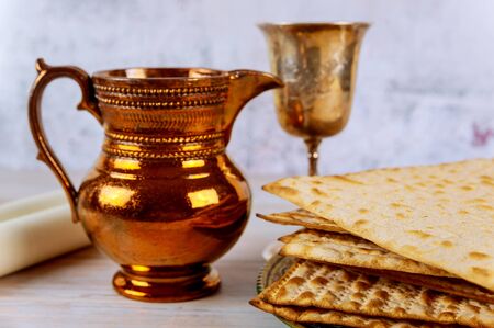 Passover celebration with matzo unleavened bread kiddush cup of wine