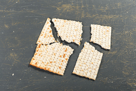 Jewish flatbread matza for Passover on dark background