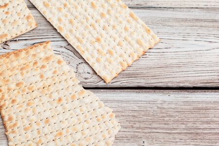 Passover background of matzoh (jewish holiday bread). Top view
