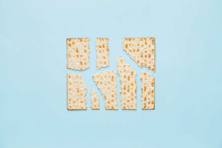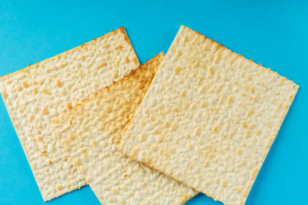 Religious matzah on the Jewish holiday of Passover, on a blue background