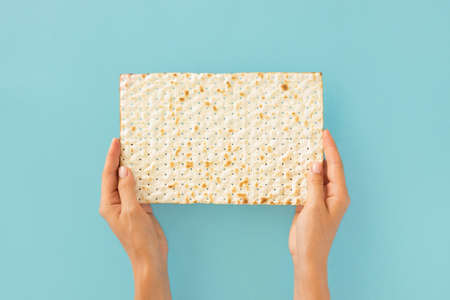top view hands holding jewish cracker. High quality photo