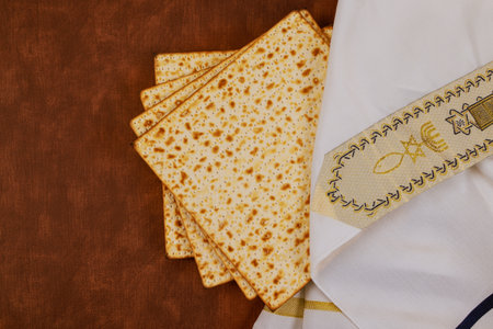 Pesach celebration ritual with unleavened flatbread Matzah, traditional Jewish holiday