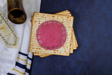 matzo flatbread for Jewish high holiday celebrations on the table