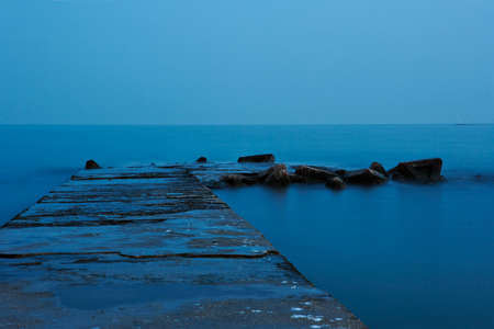 Sea bay between the pier and the beach. With clean, blue sky background.