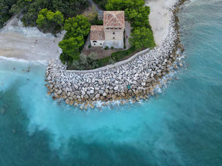 Aerial view Sirolo beach, Conero, Marche, Italy. Due sorelle beach. Italian landmark