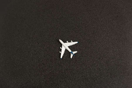 Small toy airplane on black background. Top view