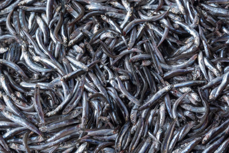Fresh anchovy fish. Seafood european pile of anchovy fish. Black sea anchovies placed in the family Engraulidae. Lots of anchovies for sale