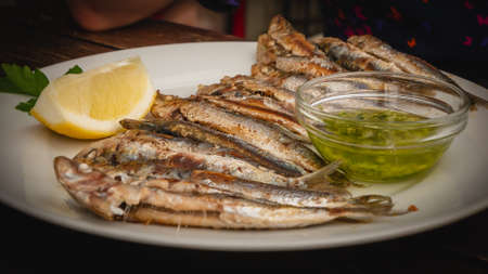 A plate of sardines at a restaurant in Piran, Slovenia.